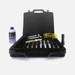 Universal Kit for Refrigerant Gas Leak Detection.Fast Leak Finder is a universal kit specifically designed for automotive and HVAC&R systems (heating, ventilation, air conditioning, and refrigeration). This comprehensive kit contains everything needed to detect refrigerant gas leaks in complex air conditioning and refrigeration systems. Thanks to a combination of advanced technology and precision tools, this kit offers a reliable and efficient solution for the maintenance of refrigerant systems.This kit stands out for its flexibility in use with different types of refrigerant gases and its ability to adapt to the specific needs of the automotive and industrial sectors. The kit is ideal for maintenance technicians and professionals in the refrigeration industry, as it offers a quick and non-invasive method for detecting leaks, thus reducing equipment downtime and repair costs. Additionally, the kit components are compatible with industrial standards, ensuring safe use and compliance with current regulations. The Brilliant Remover, included in the kit, is a powerful cleaner that removes all tracer fluid residues after leak detection.