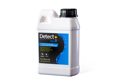 Detecte fugas y pruebe la estanqueidad con el trazador DETECT+ BLUE, líquido azul no fluorescente visible a simple vista. Dosificación: 1 a 5 ml/L, utilizable en entornos naturales e industriales. Fabricado en Francia.