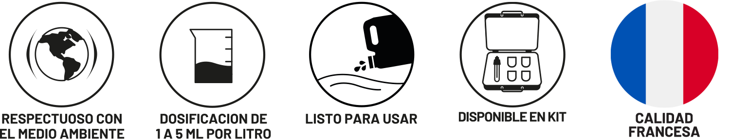 La versión líquida no es compatible con agua potable; es preferible utilizar la versión en polvo adaptada a las redes de agua potable, respetando las dosificaciones recomendadas.